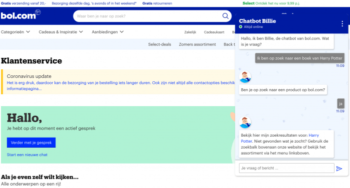Bol.com has had a chatbot that customers can turn to for all their questions for 12 years: Chatbot Billie. This made them one of the forerunners in the Dutch market.