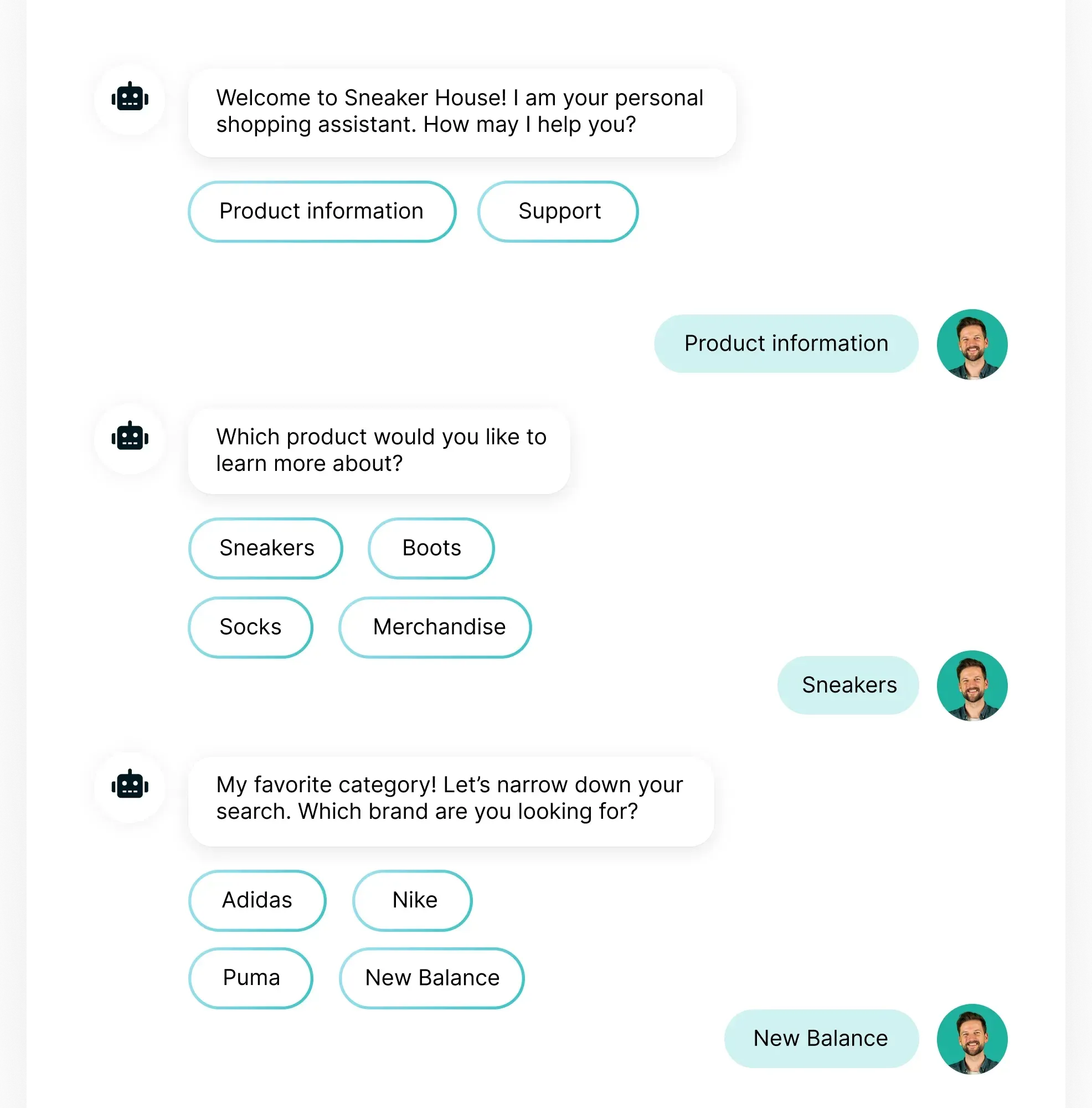 Flowbot helps you find the information your customers need quickly and easily. The bot will ask them a few simple multiple-choice questions to understand what they're looking for. Once they've chosen their option, it'll provide the requested info right in the chat. It's that simple.
