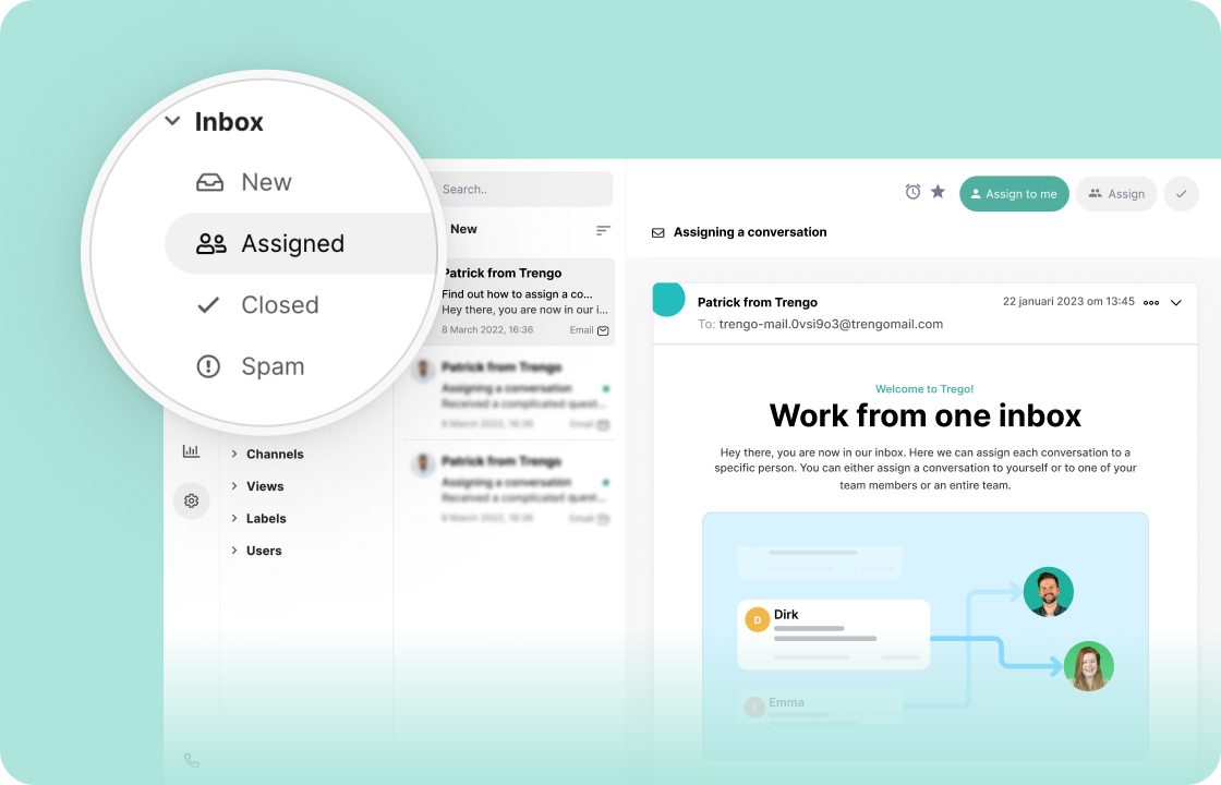 Is there a question about orders or one about invoices? No need to go through all messages individually. Assign them straight away to the right team by using automation. The right team member with the know-how on this specific topic can pick it up and respond fast. This ensures customer queries go directly to the person responsible for handling them.