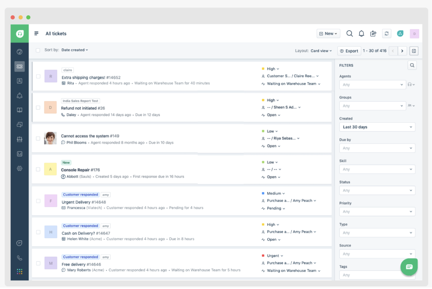 Freshdesk offers AI-powered automation to help clean up workflows. Their automation can scan through tickets and perform actions based on customers’ info. So tickets can be automatically prioritised or assigned to another team.
