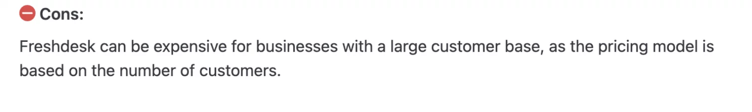 One reviewer notes that companies with large customer bases might not benefit from Freshdesk pricing: