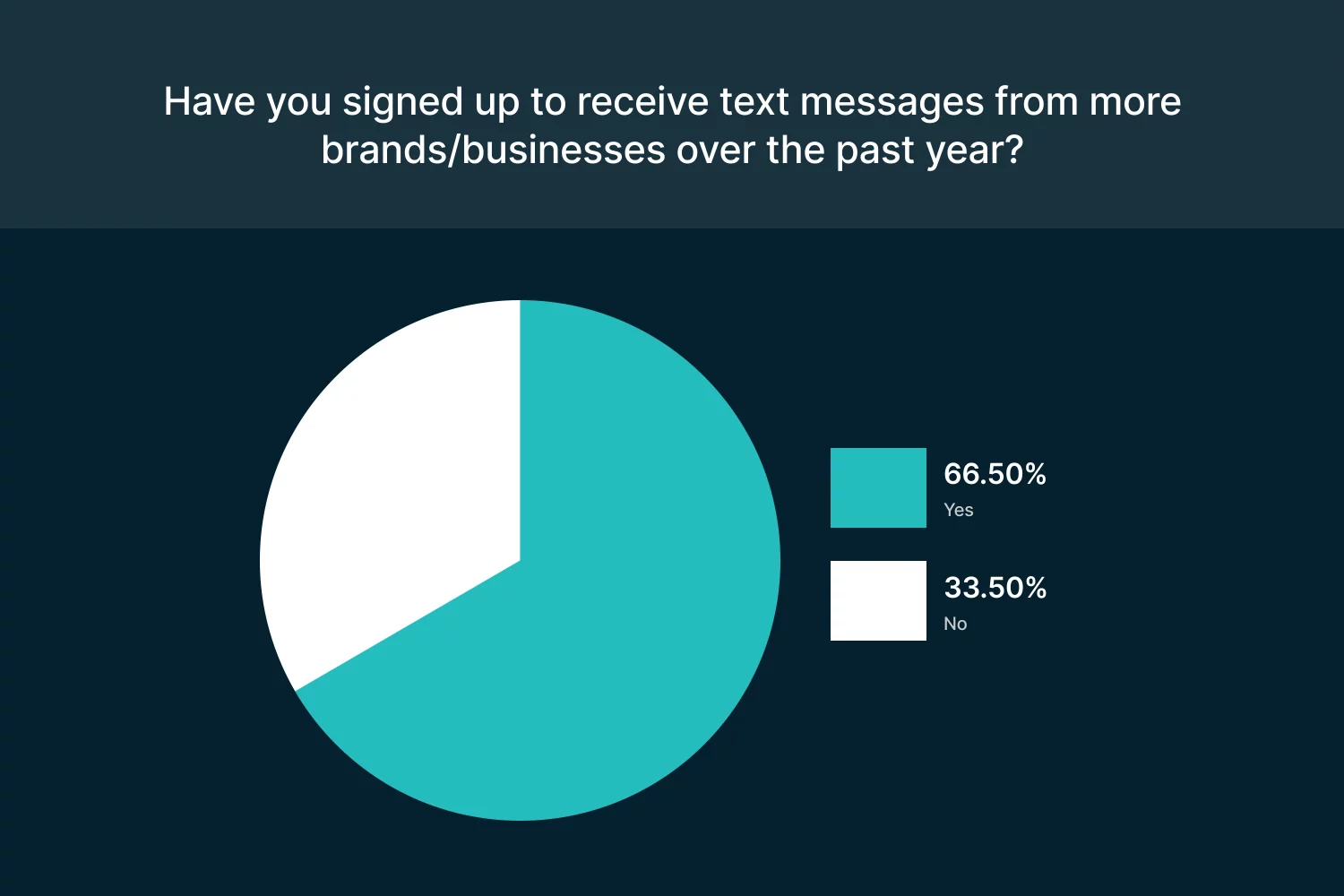 In 2021, Attentive surveyed 2,000 people to learn about SMS marketing in detail. 66.5% of the people said they’ve signed up for some or the other brand’s SMS opt-in.