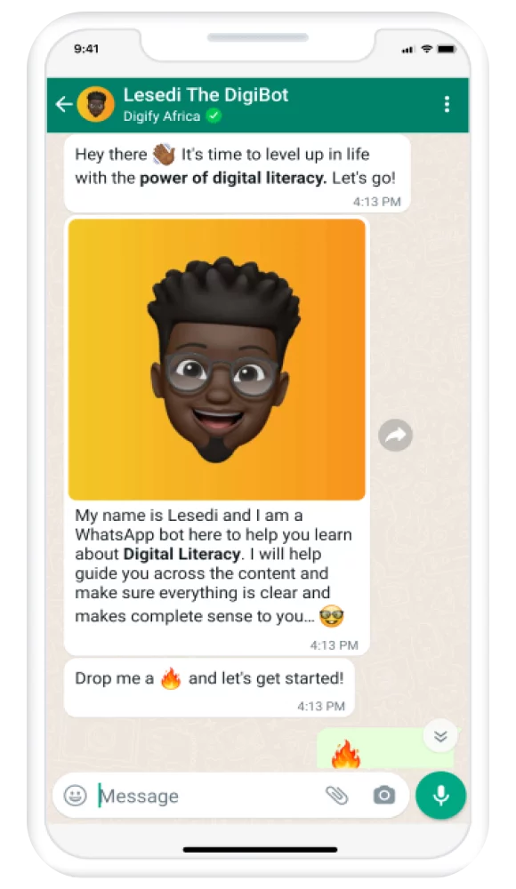 Uses Whatsapp Business to educate African youth on the digital skills they need for career success.