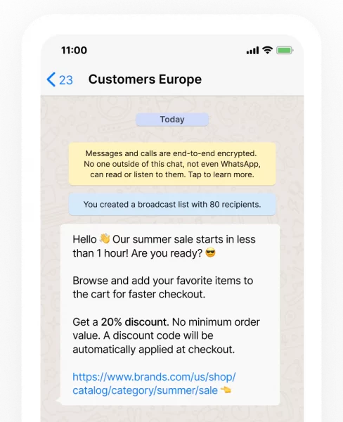 You can tailor and template your communication, automate the flow and broadcast it to your entire target audience. Gathering great results! Because of the big number of active users and the high open rate WhatsApp Business is more than ready to start driving engagement and subsequent sales.