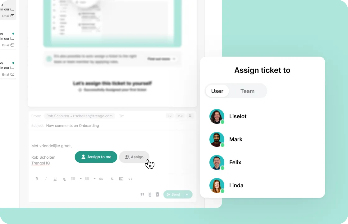 Whether your team works remote or in the office, you want them to be on top of tickets. Work from one view, use internal notes and @tagging and leave long email threads and missed tickets behind.